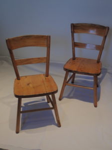 Chairs were broken down, paint removed, sanded and then put back together